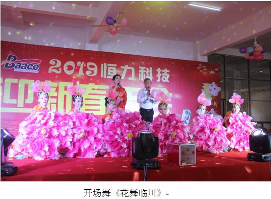 下午2::30分迎新年会在精彩的舞蹈《花舞临川》中拉开了帷幕,主持人登场,随后公司董事长感谢全体员工的辛勤工作并献上精彩的新年致辞。