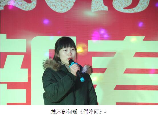 本次年会公司为大家呈现了丰富多彩的文艺节目贯穿全场。邀请一些全国获奖的优秀节目和抚州著名的歌唱演员,还有我们员工自己的风采。国家一级演员涂小玲带来的歌曲《复兴之路》,旗袍协会的旗袍表演《家有喜事》、及特邀摇滚演员带来的摇滚串烧更是让现场气氛高涨。